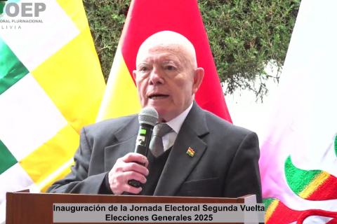 “La vocación constitucional que tienen las Fuerzas Armadas es de defender la unidad de la patria, porque la patria es sagrada, la patria no se toca”, afirmó la autoridad durante un discurso que dio en un acto en la Escuela de Comando y Estado Mayor Naval "Ladislao Cabrera Vargas" de La Paz