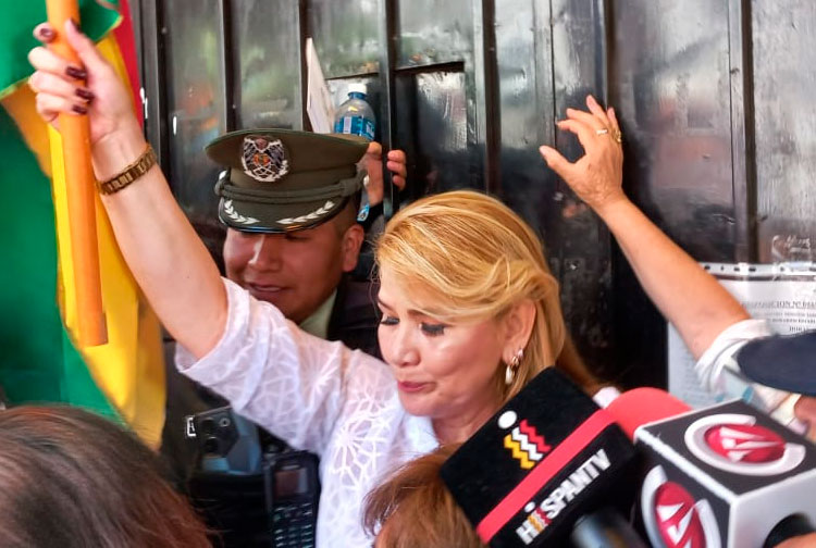 “En este país jamás hubo un golpe de Estado, lo que hubo fue un fraude electoral, que nos llevó a todos los bolivianos a reclamar nuestros derechos, a que nuestro voto sea respetado”, dijo Añez al salir del penal.