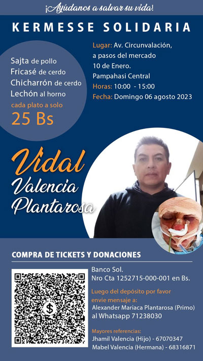 Para pagar la cuenta hospitalaria y de medicamentos, la familia está organizando una kermesse que se realizará este domingo 6 de agosto cerca al mercad 10 de enero en la zona Pampahasi Central.