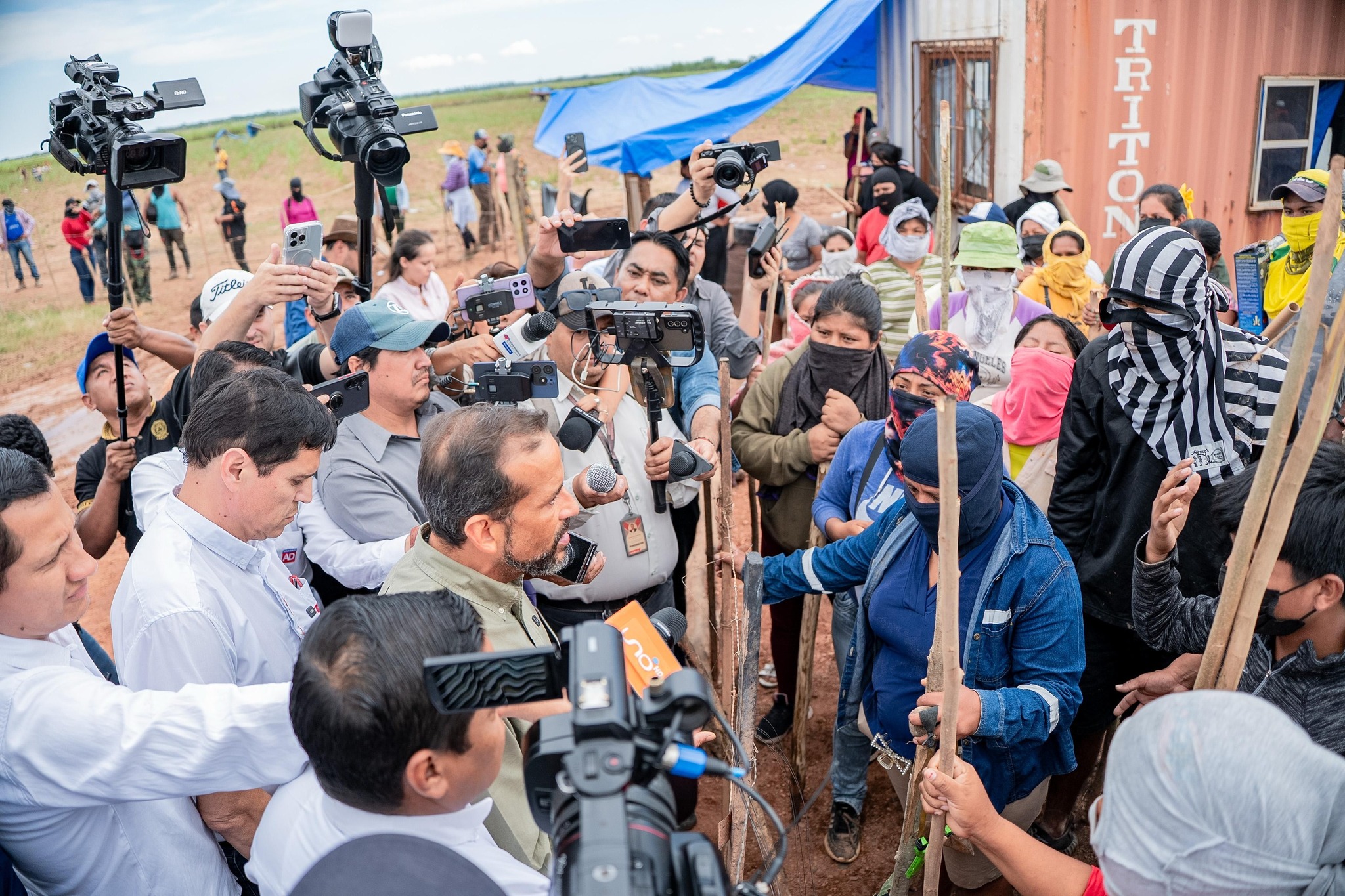 Momentos antes de la denuncia se retención, el gobernador cruceño publicó un video donde confirmó su llegada al predio que fue tomado con violencia y que derivó en el secuestro de un productor cañero, pero que horas después, fue liberado, aunque fue dejado herido y ensangrentado.