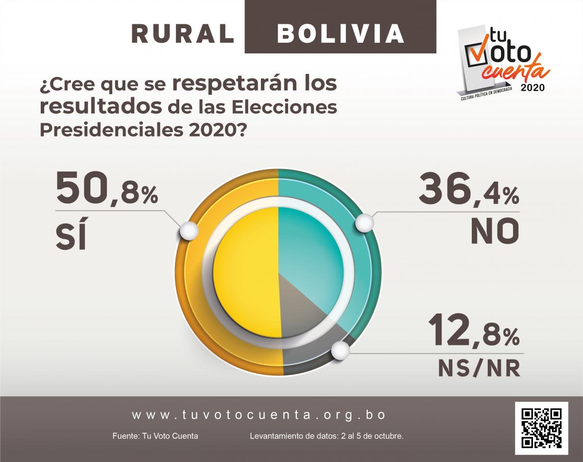 En el área urbana el 47,9 por ciento dijo que no se respetarán frente al 41 por ciento que cree que sí. En el área rural, el 50,8 por ciento cree se van a respetar y el 36,4 por ciento opina que no.