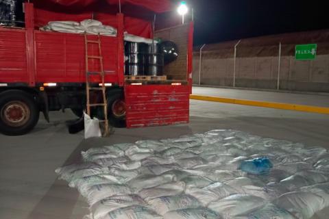 Al inspeccionar una bolsa, encontraron cientos de cápsulas con forma y apariencia similar a las tuntas, que tienen color blanco y que se produce a partir de la papa.