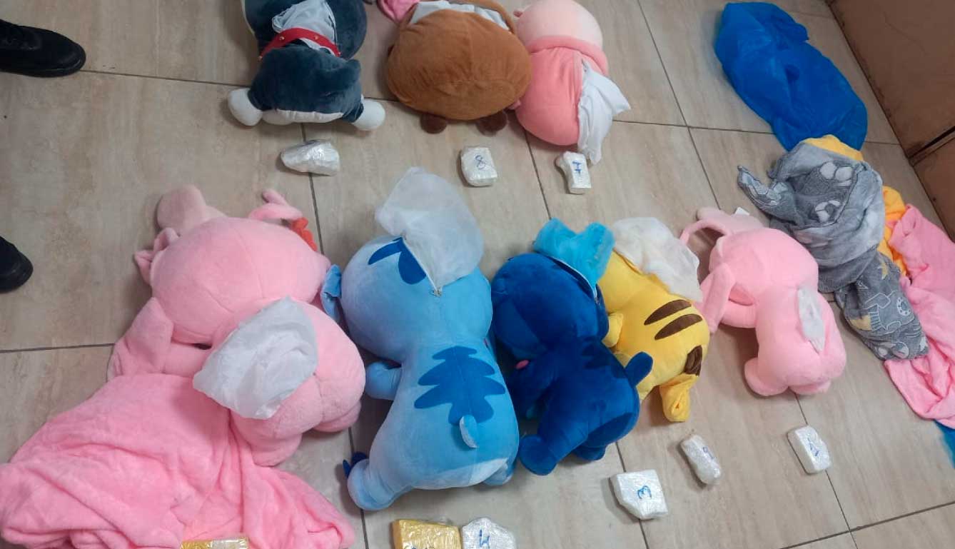 Luego, al abrir la costura de los peluches, notaron que al interior llevaban una manta donde se ocultaba la droga.