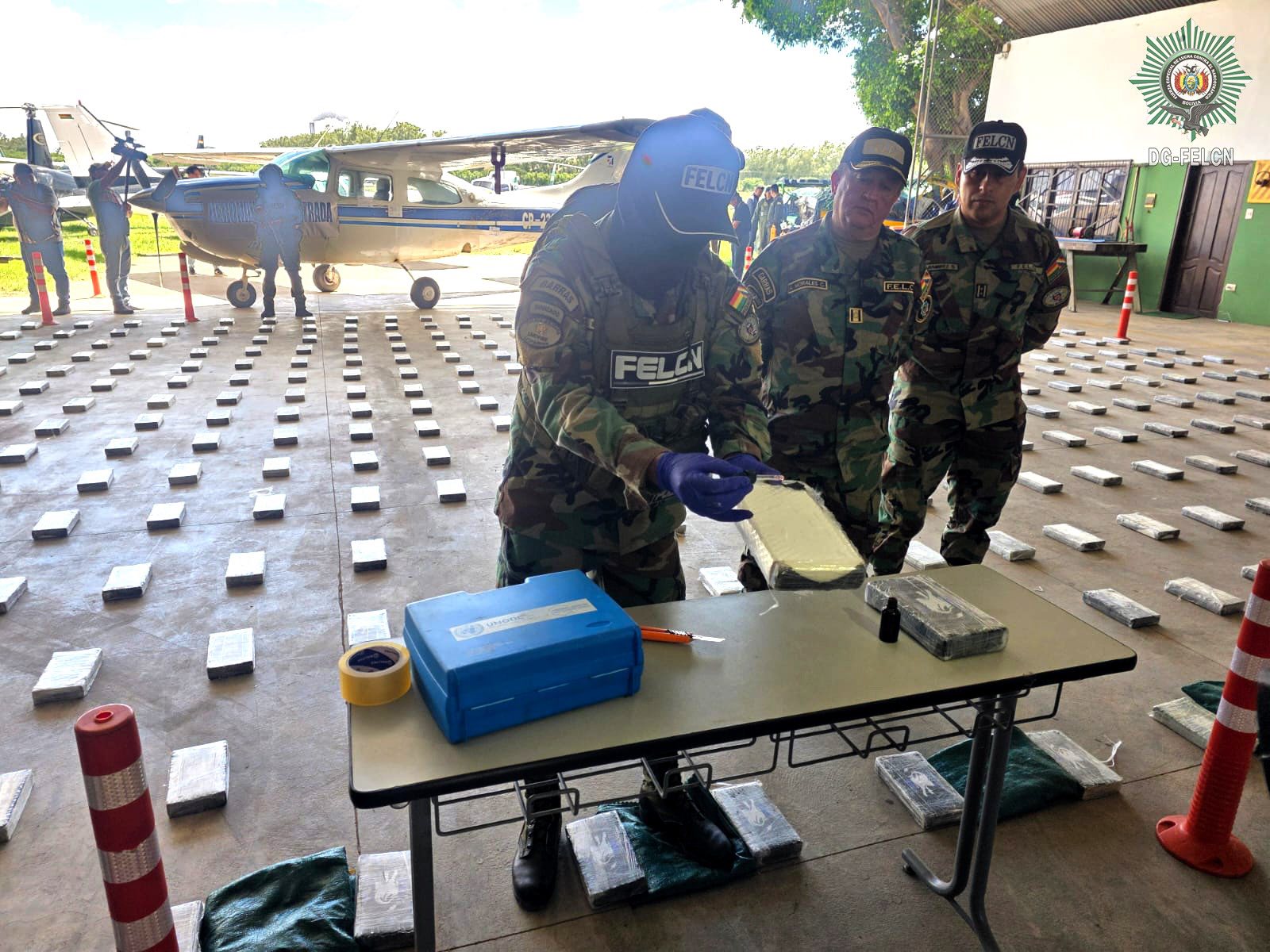 Un operativo de la Fuerza Especial de Lucha Contra el Narcotráfico (FELCN) en Santa Cruz logró la aprehensión de dos brasileños, el secuestro de 484 kilos con 600 gramos de clorhidrato de cocaína y el secuestro de una avioneta.